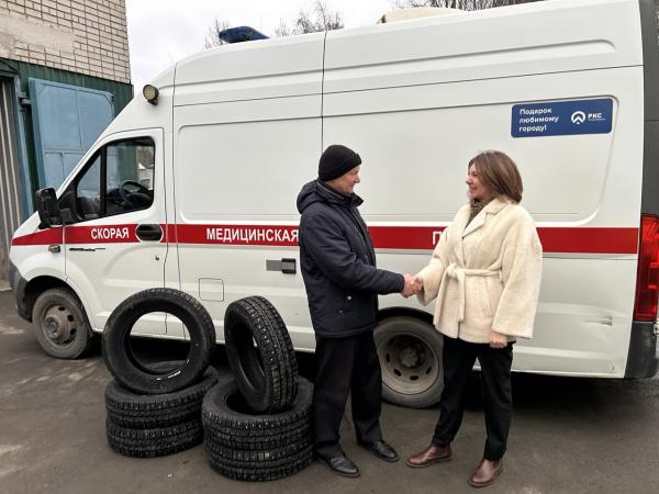 В рамках праздничного концерта главный управляющий директор «РКС-Петрозаводск» Александр Сафронов вручил подарочный сертификат на комплект новой зимней резины для автомобиля скорой медицинской помощи. Этот подарок стал продолжением социальной инициативы компании: в самый сложный период пандемии COVID-19 компания безвозмездно передала больнице новую машину скорой помощи.